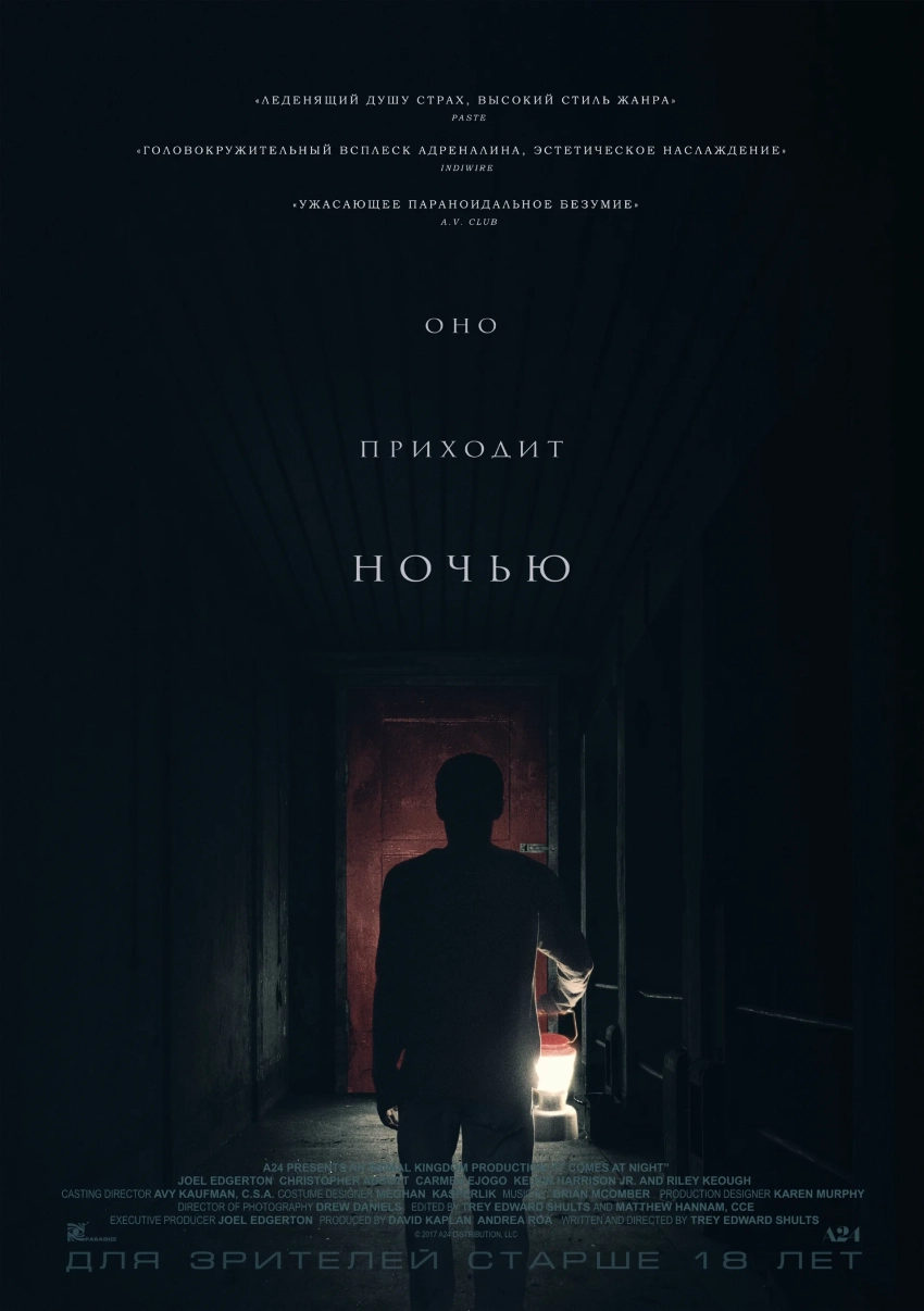 «Оно приходит ночью» — это психологический триллер, который искусно сочетает элементы хоррора и драмы, погружая зрителей в атмосферу страха и неопределенности.