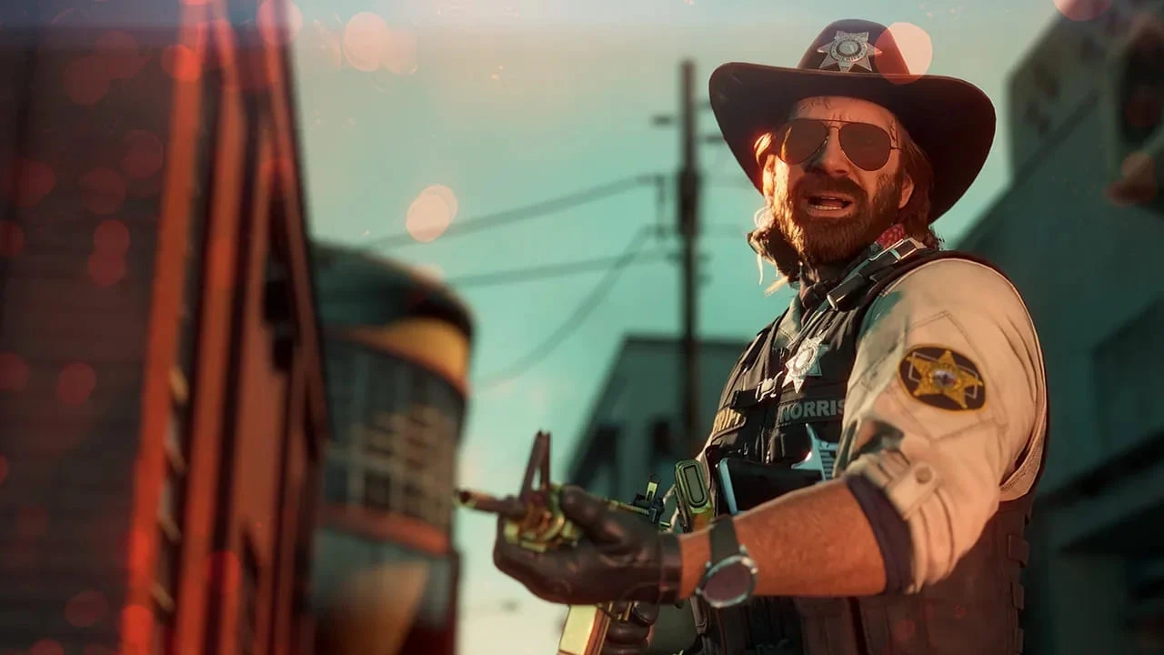 Чак Норрис появлялся и в играх, в том числе именных. В основном это были боевики и файтинги, вроде Nonstop Chuck Norris, Chuck Norris: Bring on the Pain, Ultimate Epic Battle Simulator и других. В Crime Boss: Rockay City легендарный актёр сыграл антагониста криминального экшена — честного шерифа, что неустанно преследует мафиози.