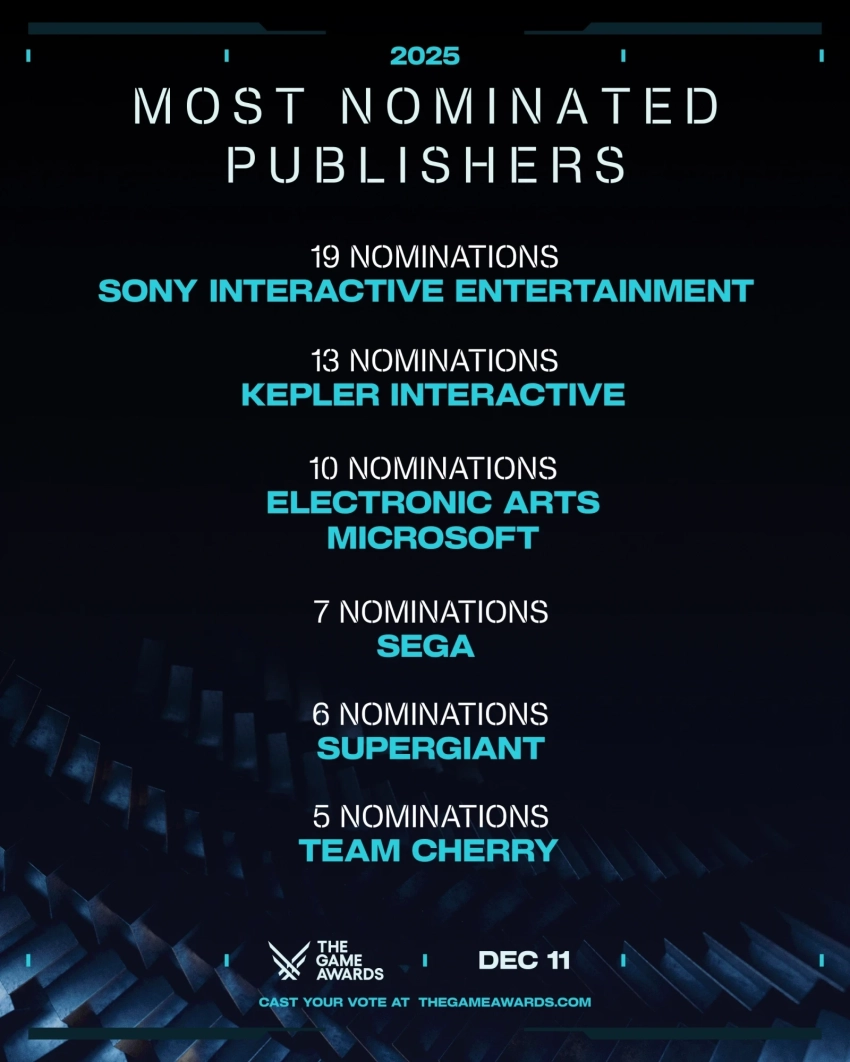 На большее число наград The Game Awards 2025 претендует Clair Obscur: Expedition 33 — игра может забрать сразу 12 статуэток. По 8 номинаций у Death Stranding 2: On the Beach и Ghost of Yotei. Кроме того, выделяются: