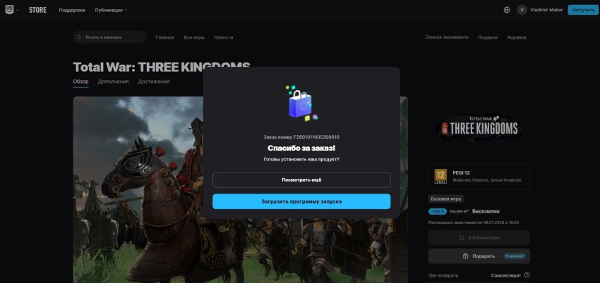 Обложка: Total War: Three KingdomsВ Epic Games Store запустили первую в наступившем 2026 году раздачу бесплатных игр. Сегодня здесь отдают сразу две игры: