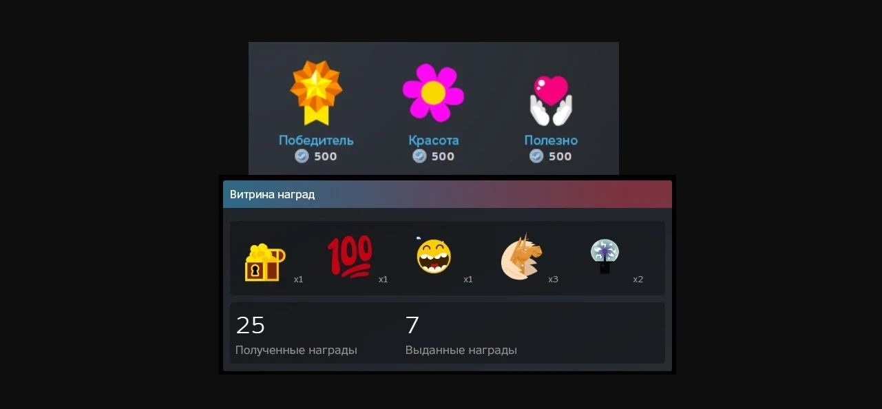 А на витрине профиля теперь выводится число наград — полученных и выданных.
