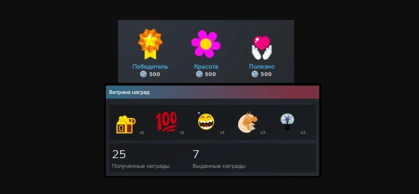 Кроме того, все награды получили одинаковый ценник. За каждую нужно заплатить 500 очков Steam.
