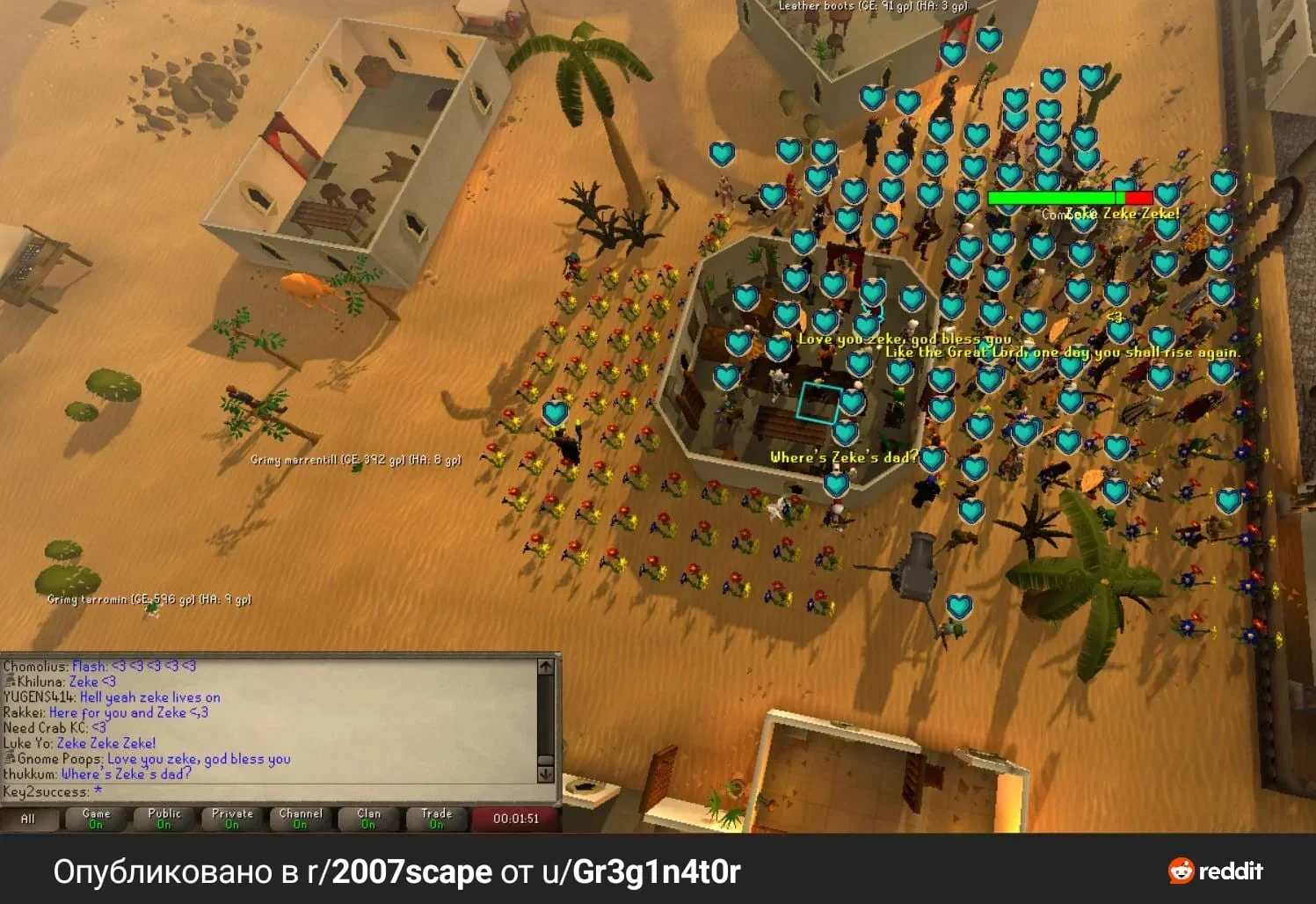 Чат затопило сообщениями полными и сочувствия и ободрения. Среди присутствующих оказался сотрудник Jagex — Mod Sarnie. Позже Gr3g1n4t0r опубликовал пост, в котором поделился эмоциями от произошедшего: